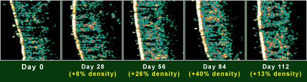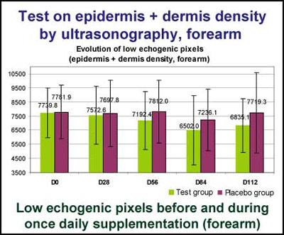 Example of dermis density increase on the right, treated forearm (volunteer #57, Vol, age 31)